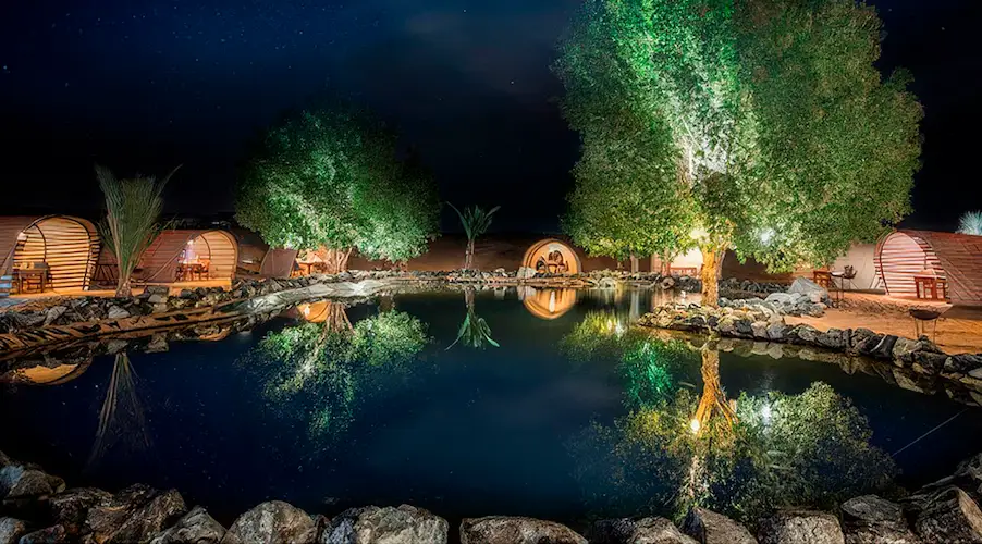 • Eco-night walk with UV flashlights to discover creatures like sandfish, scorpions, and more.